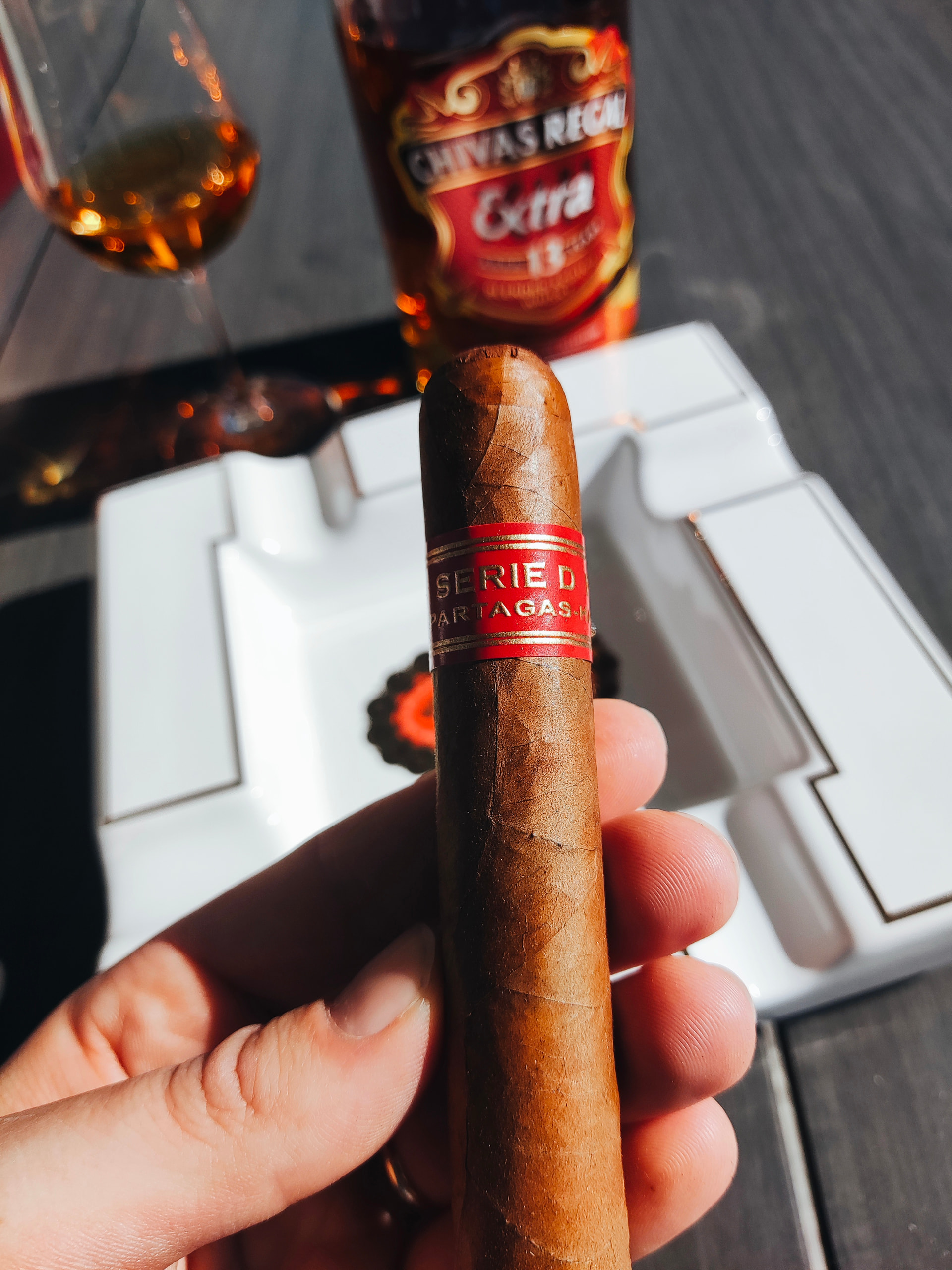 Cigara se otvara izuzetno glatko. Umjesto onog oštrog starta koji se ponekad pripisuje ovom brendu, dobio sam vrlo profinjen početak. U pozadini se osjeća blaga slatkoća koja se izvrsno nadopunjuje s Chivasom. Ono što me najviše iznenadilo je jedna suptilna nota koja me podsjetila na indijski oraščić. Cijela prva trećina prošla je vrlo elegantno.